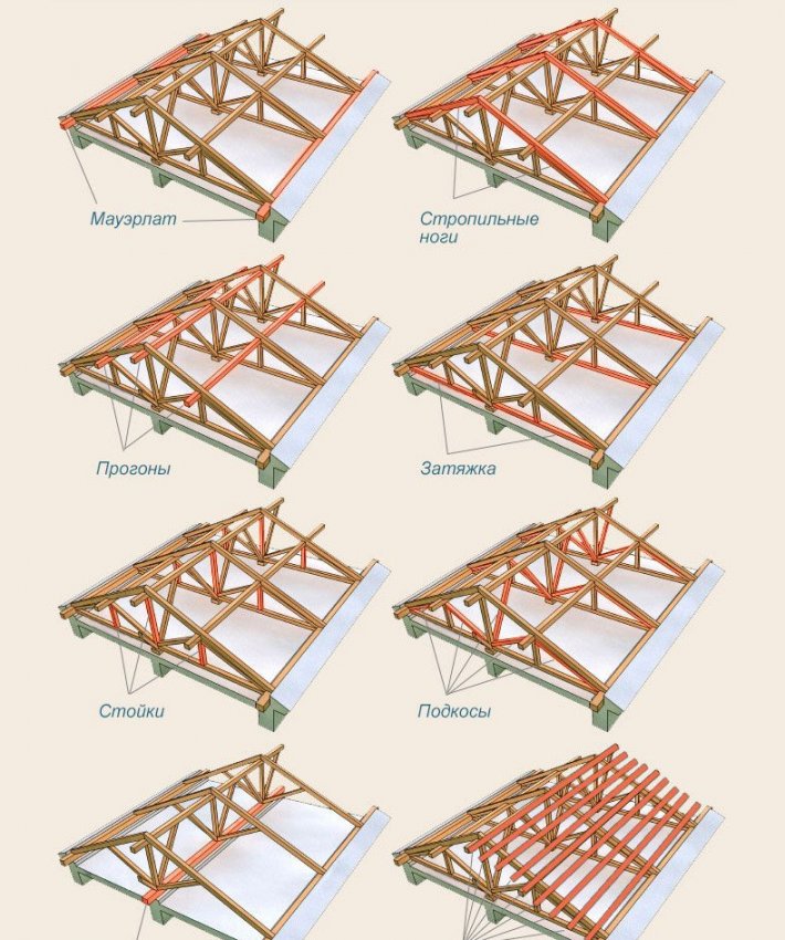 Изображение отдельных элементов стропильной системы помогает понять устройство всей конструкции