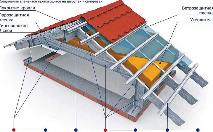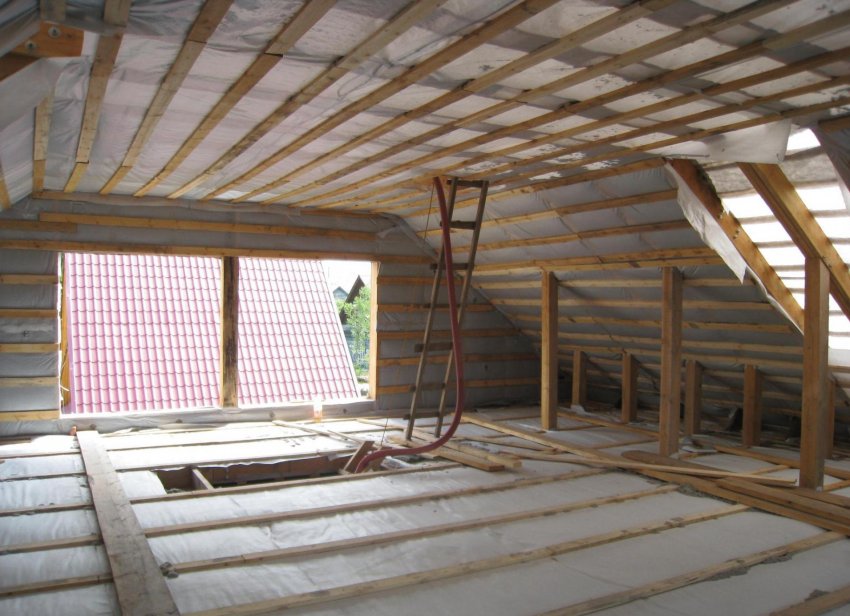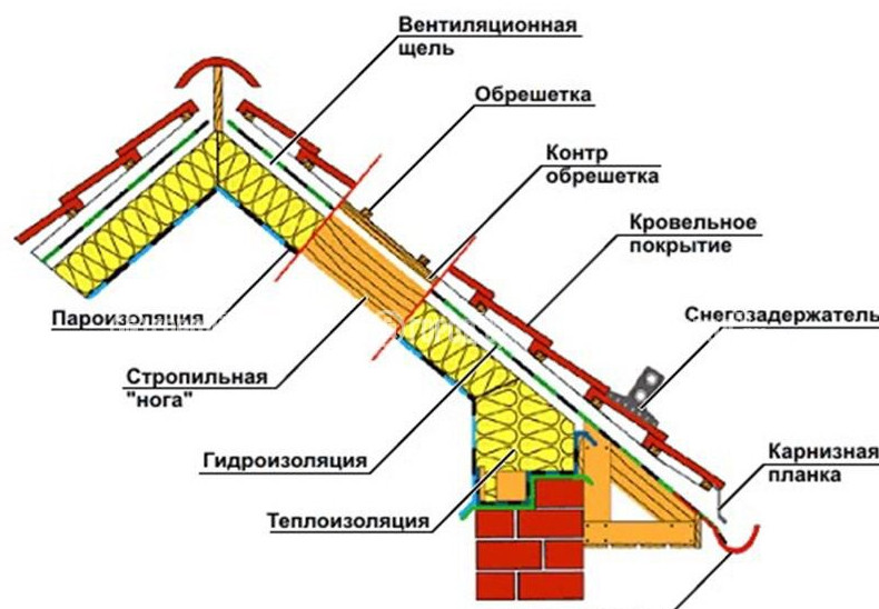 - между теплоизоляцией и кровельным материалом оставляется зазор, чтобы обеспечить естественную вентиляцию;