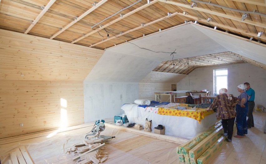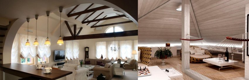 Существует много вариантов внутренней отделки мансарды, но использовать желательно только лёгкие материалы