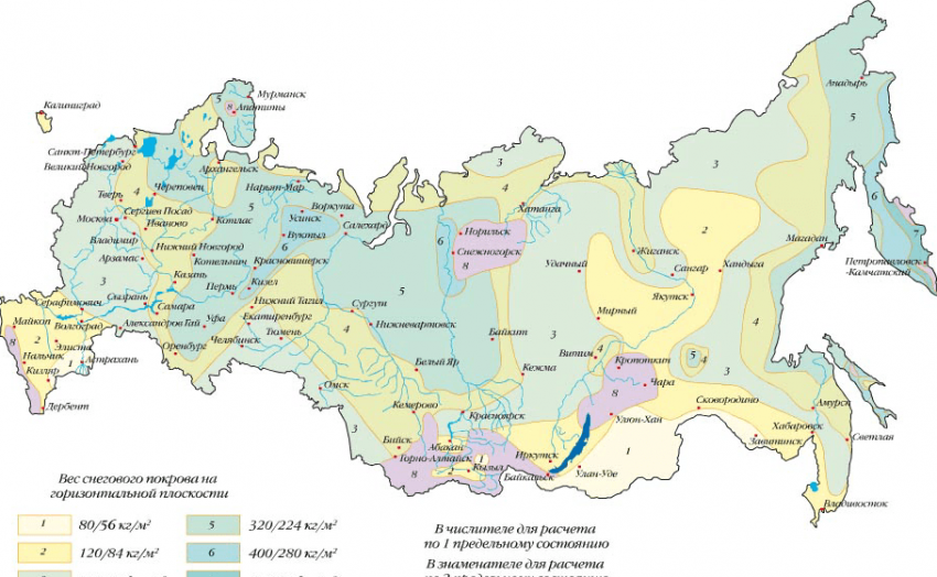 Для каждого из восьми регионов характерен свой показатель снеговой нагрузки