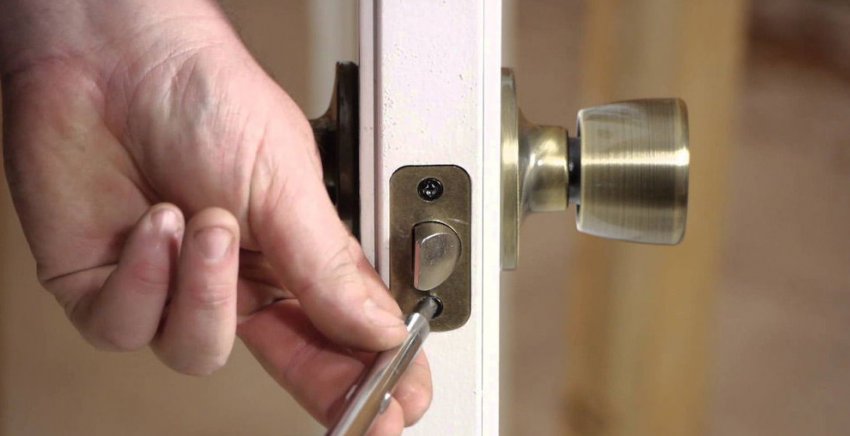 - Замок и ручку можно установить как перед, так и после навешивания двери.