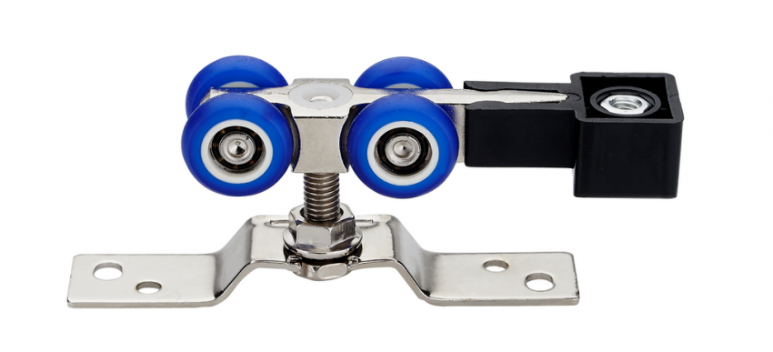 - Механизм для раздвижных конструкций должен быть прочным и металлическим. Изделие подбирается в зависимости от веса и толщины двери. Дополнительными элементами служат нижние направляющие.