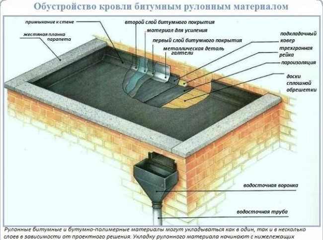 Мягкая кровля на плоской крыше формируется следующим образом: