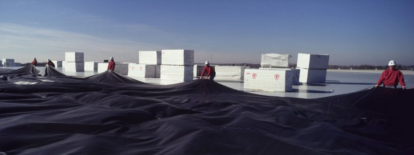 - при необходимости выравнивания поверх существующего утеплителя (старое кровельное покрытие при этом демонтируется) обустраивается слой геотекстиля, который служит разделительным материалом;