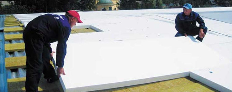 - Укладка утеплителя. Под мембранную кровлю рекомендуется укладывать минеральную вату или пенопласт. Элементы утеплителя необходимо располагать максимально плотно друг к другу, при этом желательно фиксировать их дюбель-гвоздями.