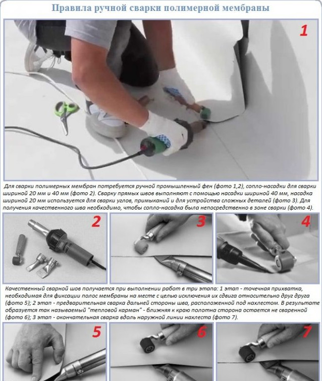 Заделка расслоившегося шва производится специальным инструментом для пайки мембранных полотен