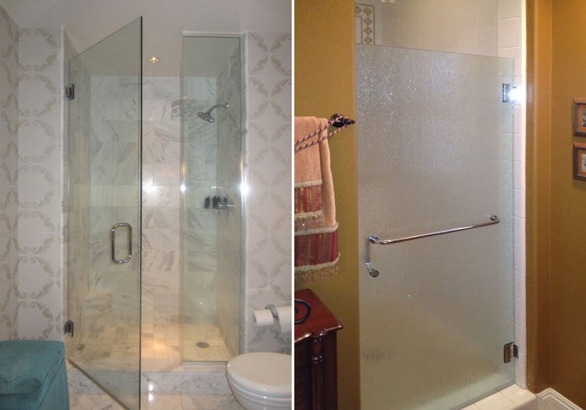 Двери из незакаленного стекла не подходят для ниши в туалете или ванной, так как непрочны и могут расколоться от незначительного удара. Поэтому перегородка должна быть выполнена из прочного стекла.