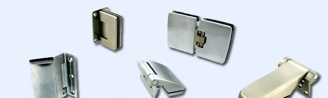 - Петли для стеклянных полотен выполняют из стали. Существуют угловые, шарнирные, накладные, универсальные. Для крепления каждого варианта необходимы отверстия в полотне, а также коробе или стене.