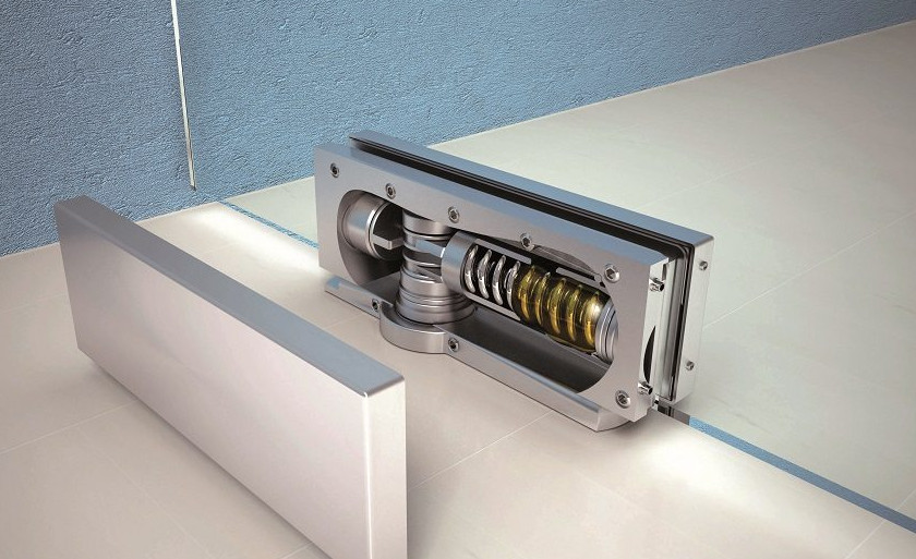 - Доводчик необходим для внешней двери, ведущей в ванную или туалет. Такое приспособление обеспечивает аккуратное закрытие, в чём особенно нуждаются стеклянные полотна. Доводчик крепится с помощью монтажной пластины, но существует множество моделей приспособлений.