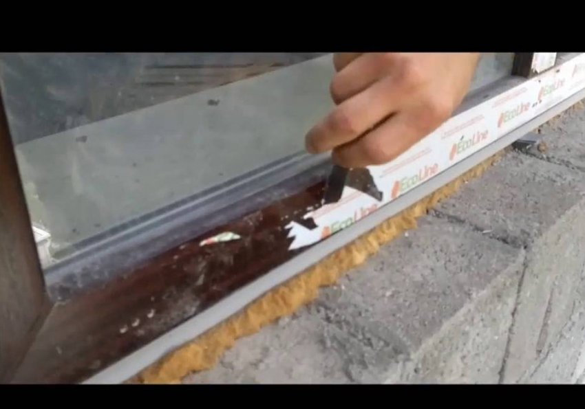 - Достать штапик, при этом следует двигаться параллельно стеклу.