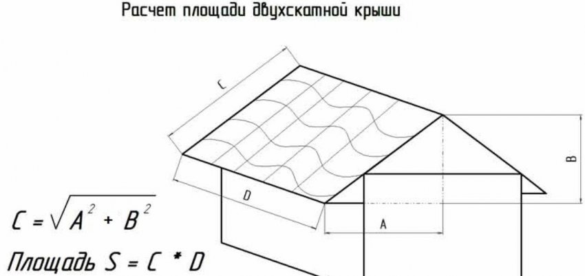 Для простой двускатной крыши применяется формула площади прямоугольника, для более сложных форм скатов могут понадобиться формулы площади трапеции, круга и других геометрических фигур