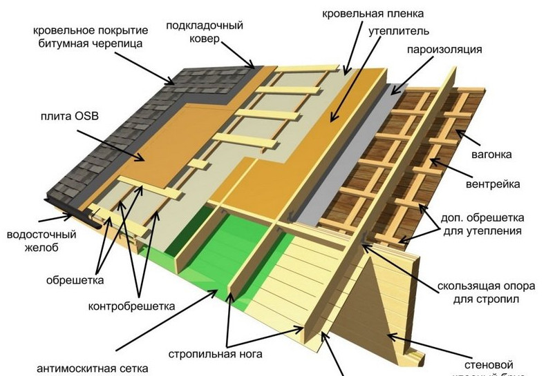 Кровельный пирог холодного чердака выглядит следующим образом: