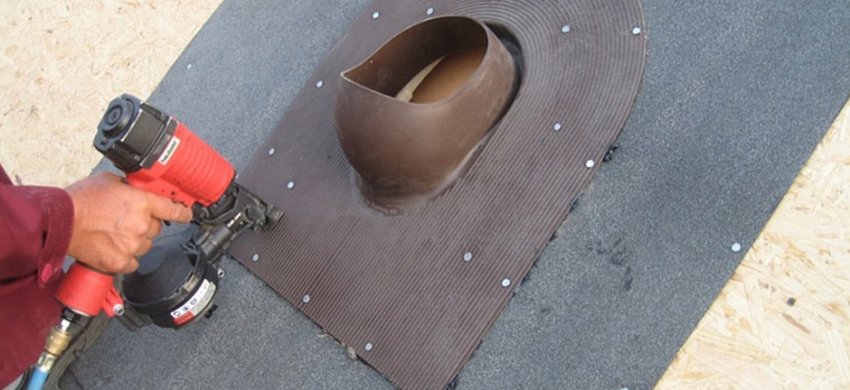 Место устройства прохода аэратора через кровлю дополнительно изолируют слоем подкладочного ковра