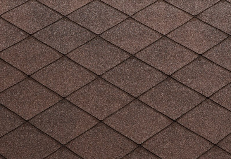 Ромбовидная мягкая кровля выглядит очень сдержанно и создаёт впечатление абсолютно плоского покрытия