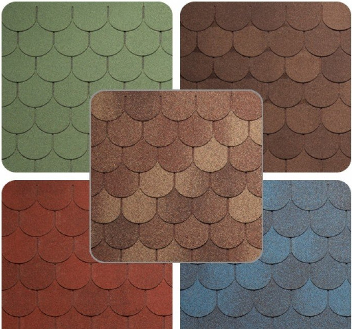 Кроме того, форма гибкой черепицы различается по количеству лепестков, которых может быть от одного до пяти. Впрочем, недорогие виды покрытий могут выпускаться и в виде неразрезанного гонта, который раскраивается перед непосредственной укладкой.