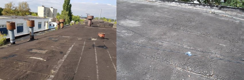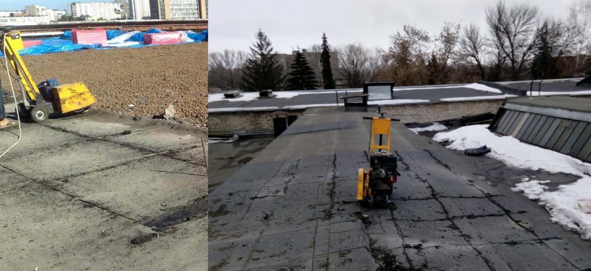 Сначала удаляется старое покрытие, а потом накладывается новый слой мягкой кровли