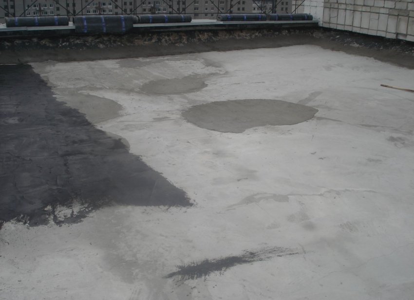 Влага образовывается из-за укладки кровельного покрытия на бетонные плиты, внутренняя влажность которых составляет более четырёх процентов. Такое основание испаряет из себя большое количество влаги. В зимний период она замерзает, разрывая ковёр, а летом — активно испаряется, приподнимая его. В результате на поверхности кровельного материала образуются трещины. Поэтому по плитам делается качественная пароизоляция.