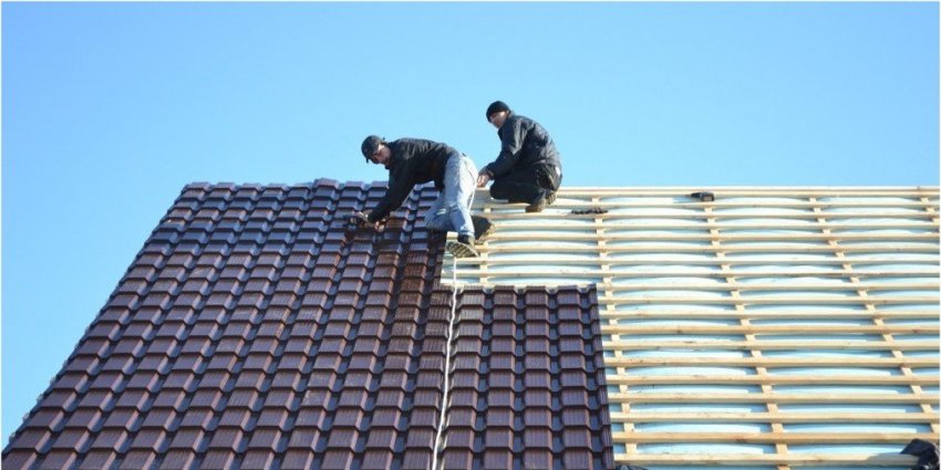 Монтаж металлочерепицы практически невозможно осуществлять в одиночку, поскольку листы имеют большие размеры и вес