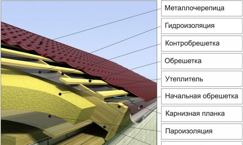 Укладка более толстого слоя утеплителя позволяет улучшить звукоизоляцию крыши с покрытием из металлочерепицы
