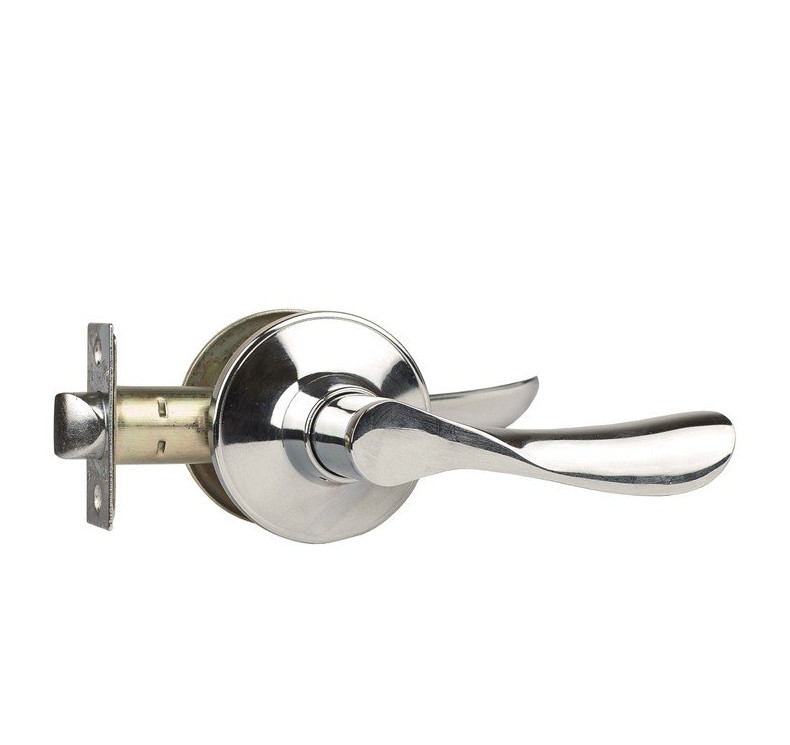 - нажимные — обладают несложным механизмом, помогают запирать дверь путём присутствия так называемого язычка, который уходит в отверстие в полотне;