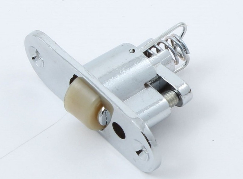 - Роликовую. Данная конструкция является наиболее простой. В её состав входит металлический корпус с пазом и шарик. Принцип действия системы довольно прост. Под давлением пружины, которое возникает при закрывании двери, шарик попадает внутрь металлического корпуса, благодаря чему и происходит фиксация. Для открывания же двери нужно приложить намного больше усилий, чем при открывании обычной двери.