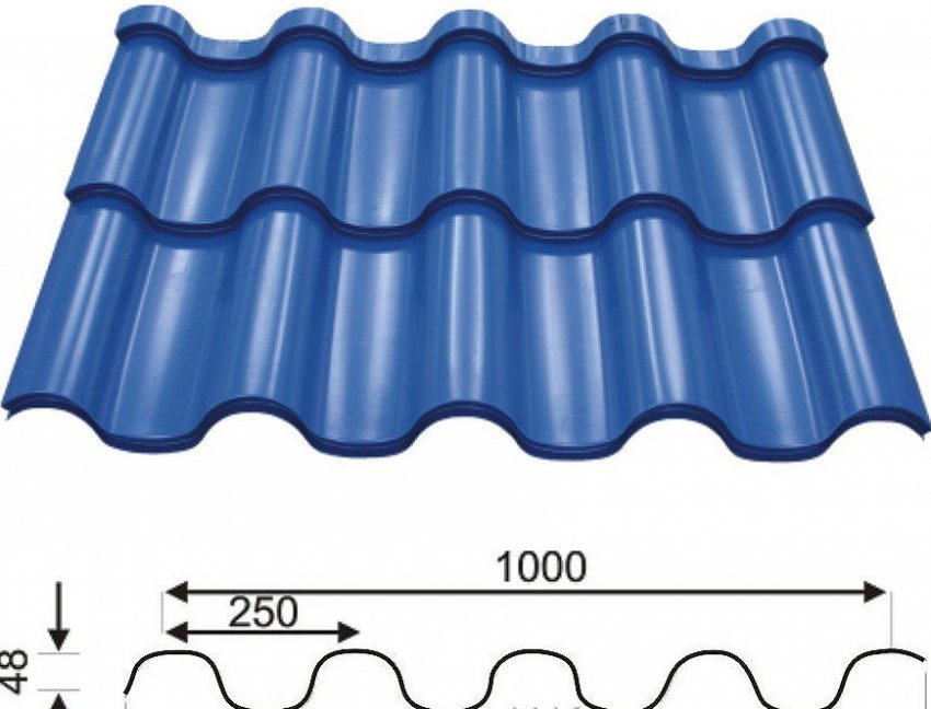Основными параметрами листа металлочерепицы считаются: длина, ширина, толщина, высота профиля и шаг его волны.