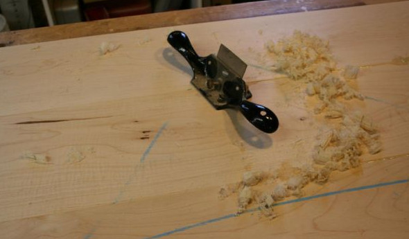При помощи рубанка поверхности собранного щита придают необходимую гладкость