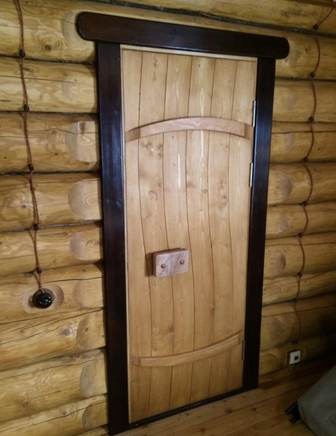 Для русской бани с влажным паром лучше всего подходит именно массивная дверь.