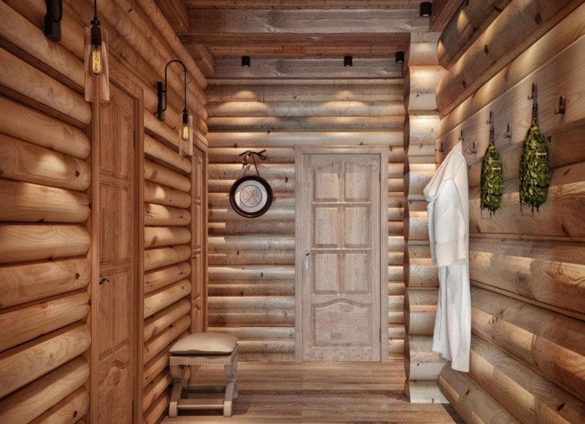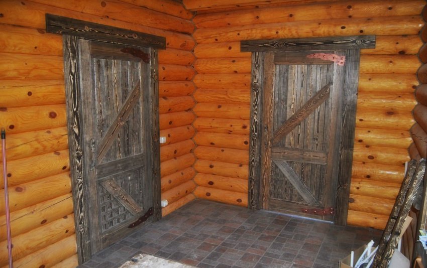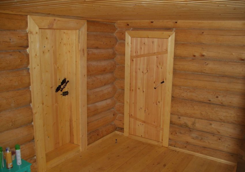 Двери внутри бани для разных комнат лучше делать из дерева, чтобы удерживать тепло в зимний период