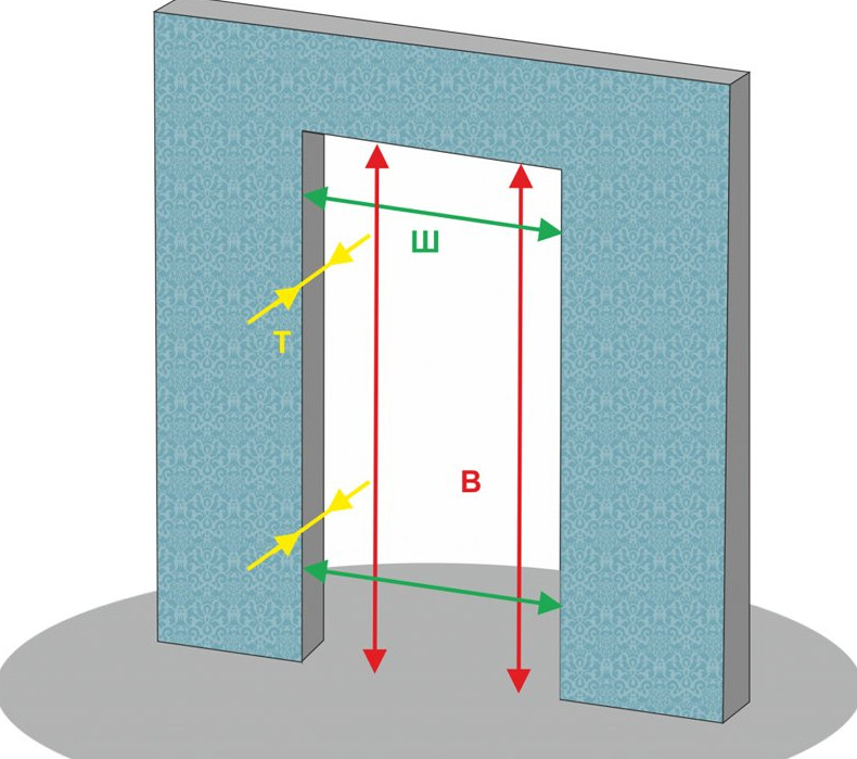 Т — глубина, В — высота, Ш — ширина дверного проёма