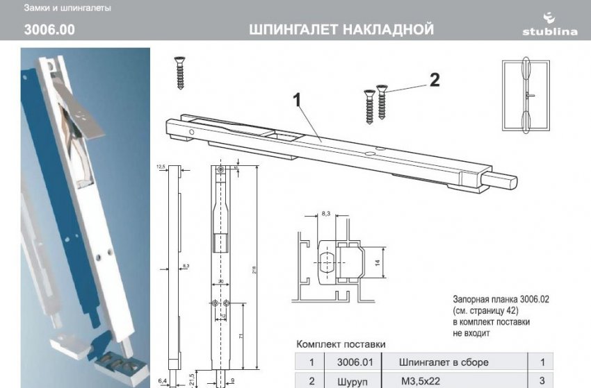Спецификация шпингалета указвается в техническом паспорте изделия