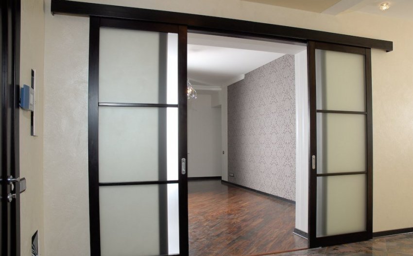 Отсутствие наличников и коробки упрощает монтаж раздвижных дверей