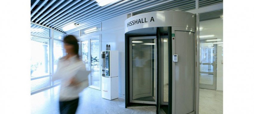 Отличительная черта маятниковых дверей — способность пропускать большие потоки людей в разных направлениях