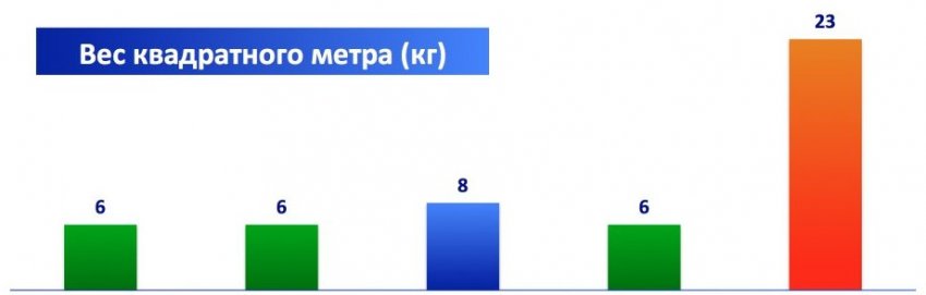 Можно сравнить вес квадратного метра профнастила с другими кровельными материалами. Он почти в полтора раза легче битумной черепицы и в четыре раза легче шифера.