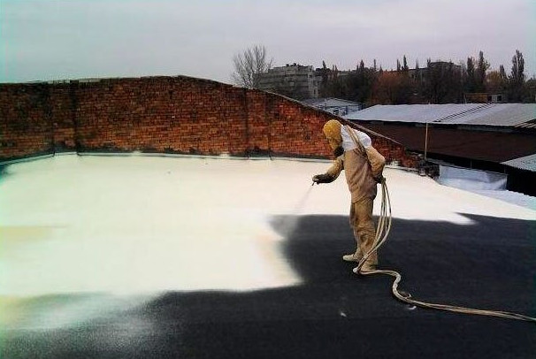 - Пенополиуретан. Отличный материал для утепления кровель, не имеет швов и стыков, негорючий. Наносится методом напыления.
