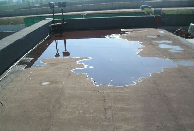 Если разуклонка кровли выполнена неправильно, на поверхности будут образовываться скопления воды, которые постепенно разрушат покрытие