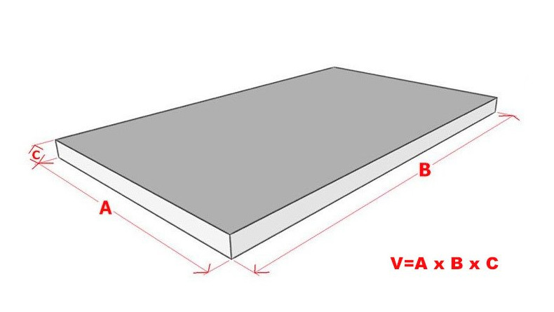 Требуемый объём бетона для устройства стяжки определяется перемножением её длины, высоты и ширины