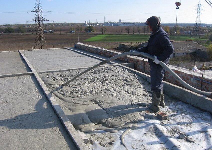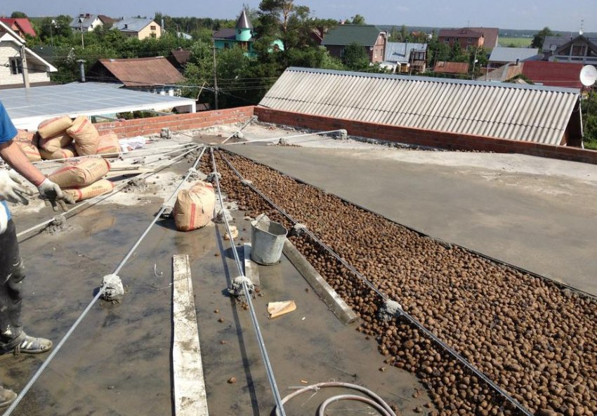 Для формирования уклона и дополнительной защиты утеплительного материала на плоских кровлях делают стяжку из керамзитобетона