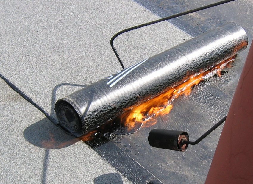 Для защиты пенополистирола от воздействия открытого огня при наплавлении поверх него насыпают керамзит и устраивают стяжку