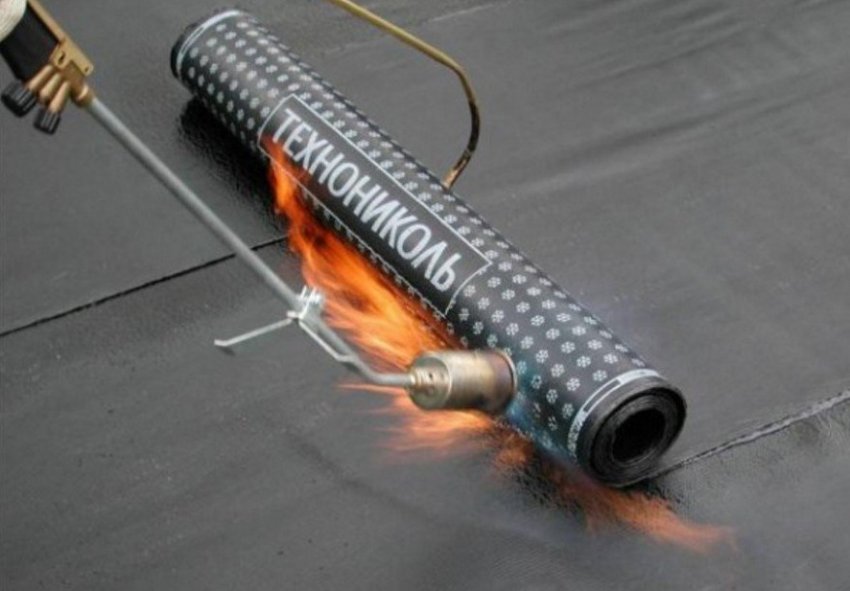 Для укладки кровельного материала методом наплавления необходимо разогреть нижнюю поверхность полотна газовой горелкой и плотно прижать его к основанию