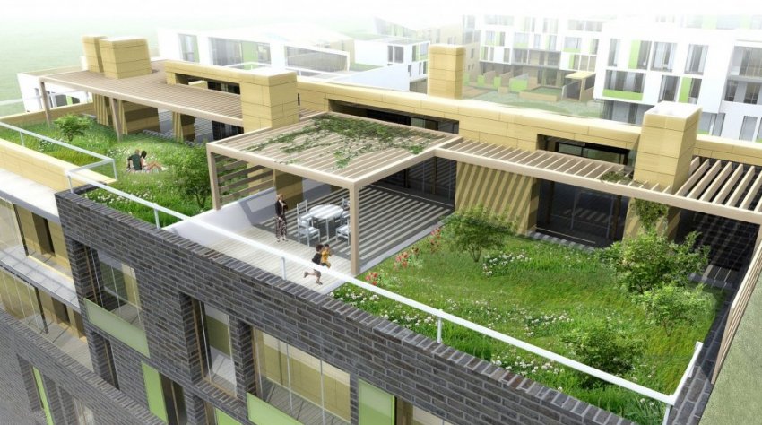 - многофункциональность — на такой крыше можно обустроить и сад, и спортивную площадку, и бассейн;