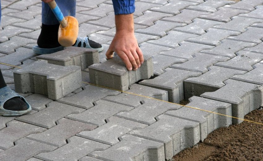 Тротуарную плитку укладывают непосредственно на песчано-гравийную подсыпку и выравнивают резиновым молотком