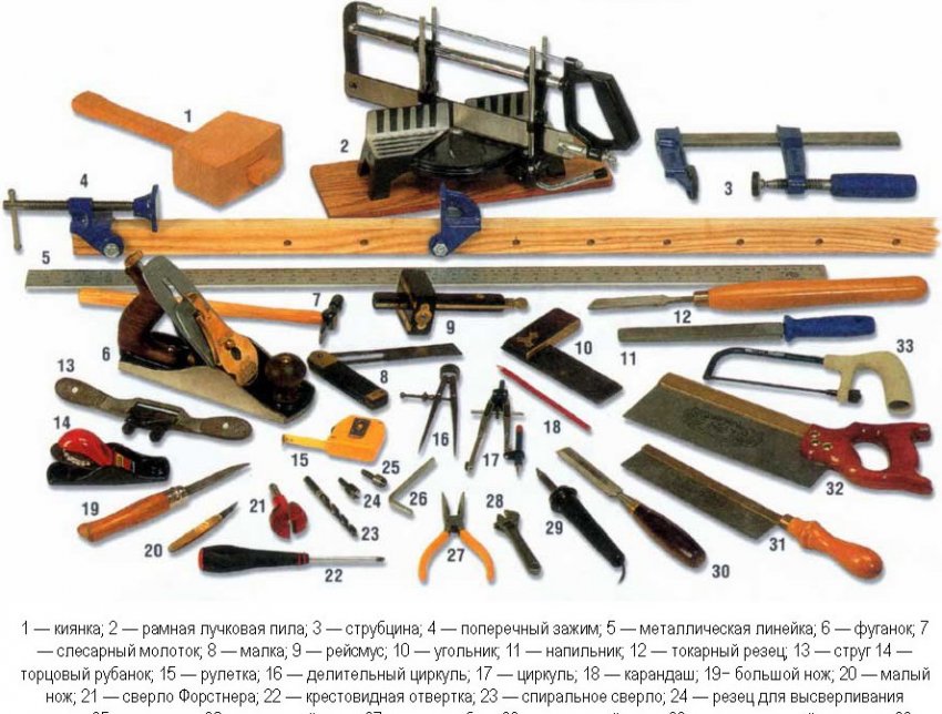 - ручные инструменты: стамеска, киянка, молоток, рубанок;