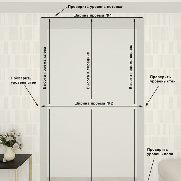 Правильное проведение замеров предусматривает измерение высоты, ширины и толщины проёма в миллиметрах
