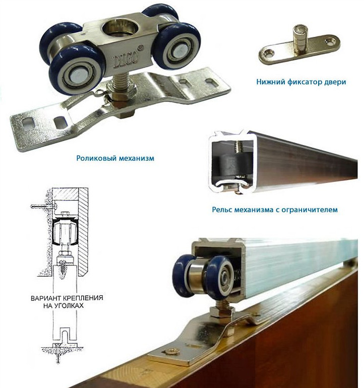 Нижний фиксатор не дает возможности двери выскочить из направляющей