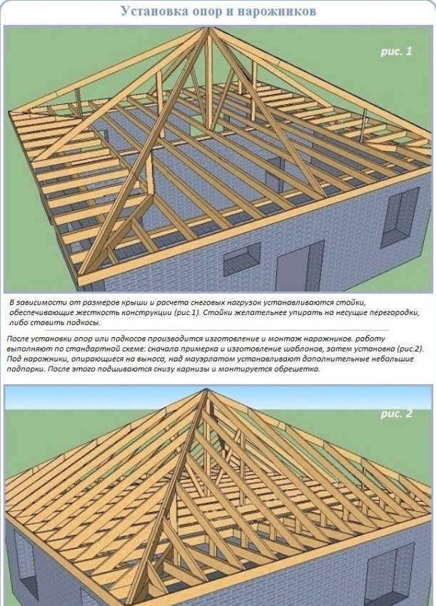 - для промежуточного крепления стропил используются стойки и подкосы;