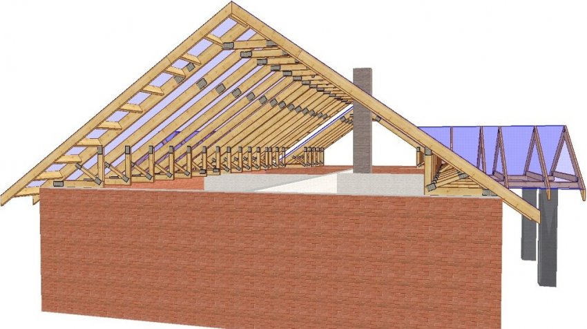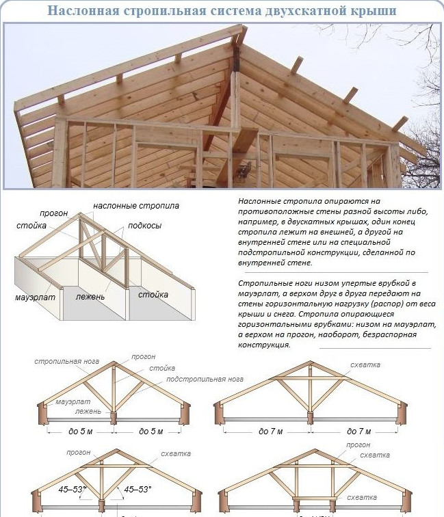 Наслонные стропила имеют одну или несколько опор внутри дома