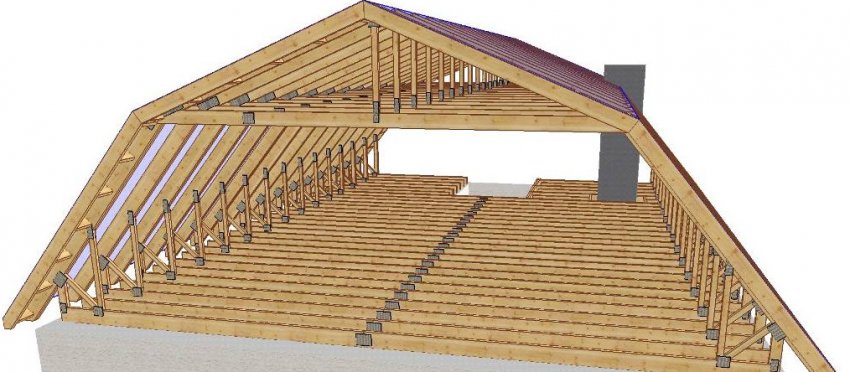 - Стропильная система мансардной ломаной крыши, обеспечивающая максимальный объём жилого пространства при относительно невысокой стоимости.