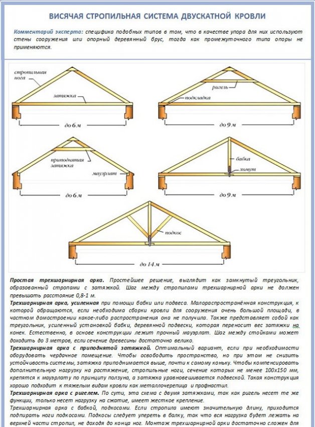 В зависимости от ширины здания применяются разные виды мансардных стропильных систем, которые делятся на висячие, наслонные и комбинированные.