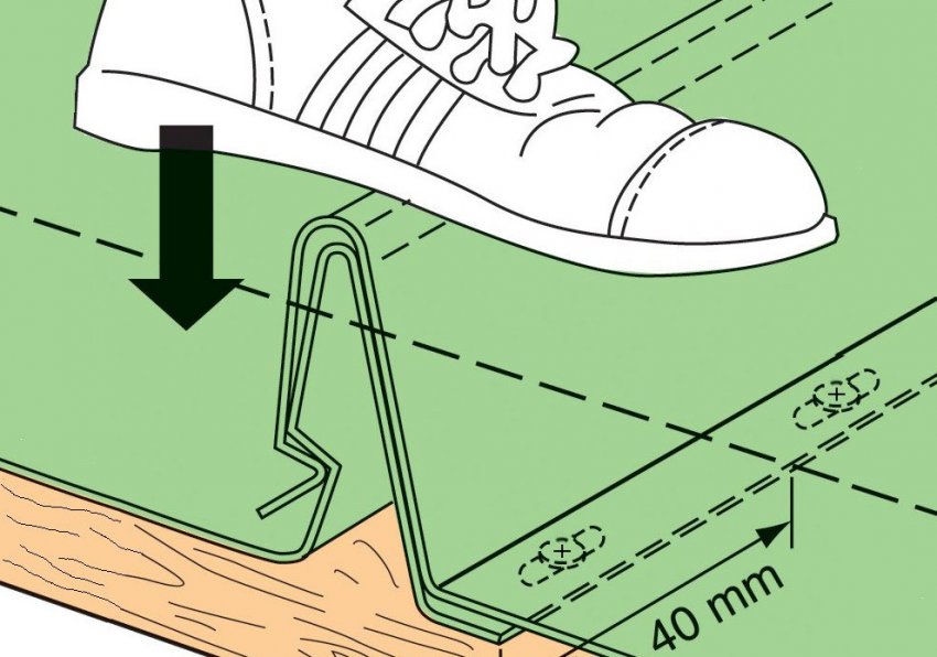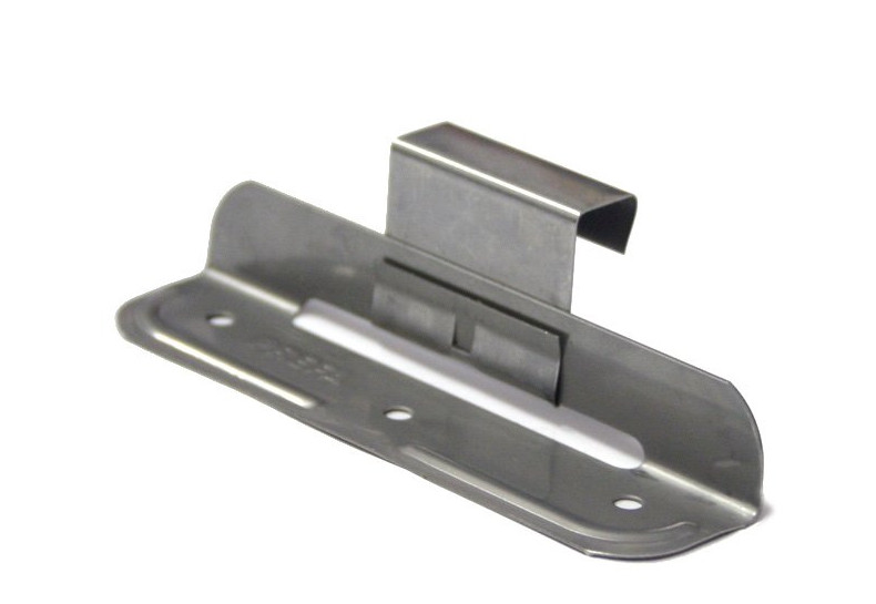 - кляммер — крепёжный элемент, при помощи которого картины фиксируются к обрешётке крыши. Он может быть подвижным (для листов длиной более 6–10 м), позволяющим компенсировать расширение металла и неподвижным (для листов длиной менее 6 м).